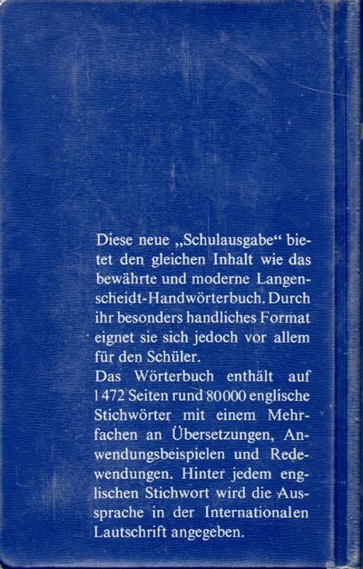 Langenscheidts Handwörterbuch : Englisch-Deutsch : ungekürzte Schulausgabe