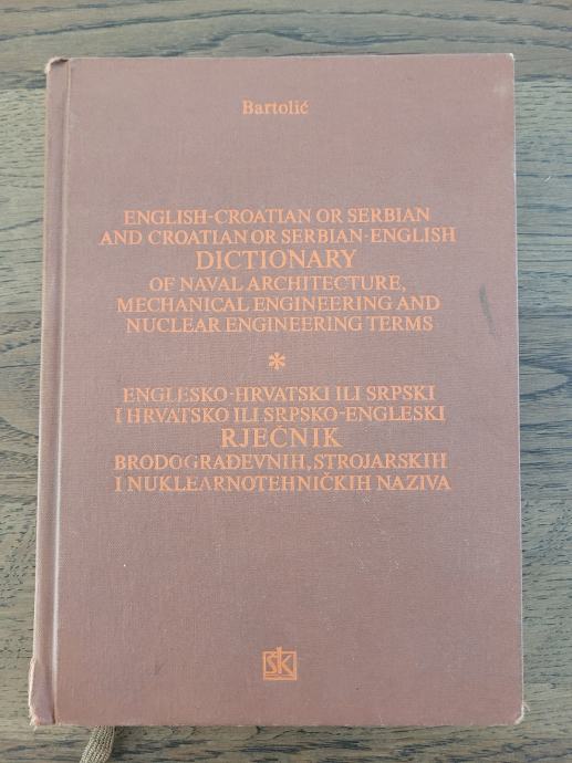Englesko-hrvatski i Hrvatsko-engleski rječnik brodograđevnih pojmova gospođe Ljerke Bartolić, prodajem. Dim. 17 x 24 cm, izdanje 1979., 276 stranica.