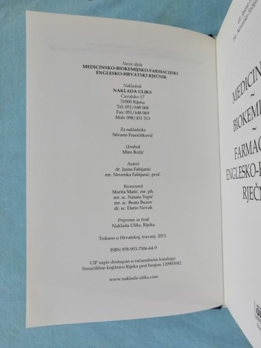 Jasna Fabijanić i Nevenka Fabijanić – Medicinsko-biokemijsko-farmaceutski englesko-hrvatski rječnik