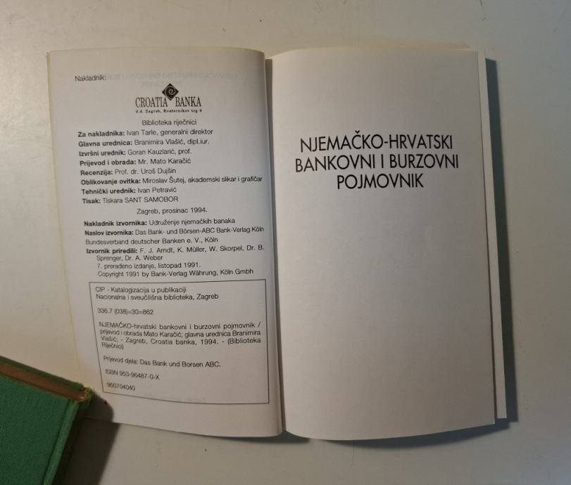 Prijevod i obrada: Mato Karačić. Glavna urednica: Branimira Vlašić. Prijevod djela: Das Bank und Borsen ABC.