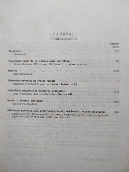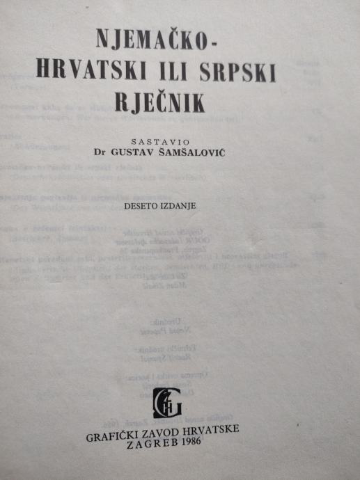 Opsežan njemačko- hrvatski rječnik s osnovama gramatike, autor Gustav Šamšalović, izdanje GZH, Zagreb 1086. U odličnom stanju jer gotovo i nije korišten; tvrdi uvez i omot