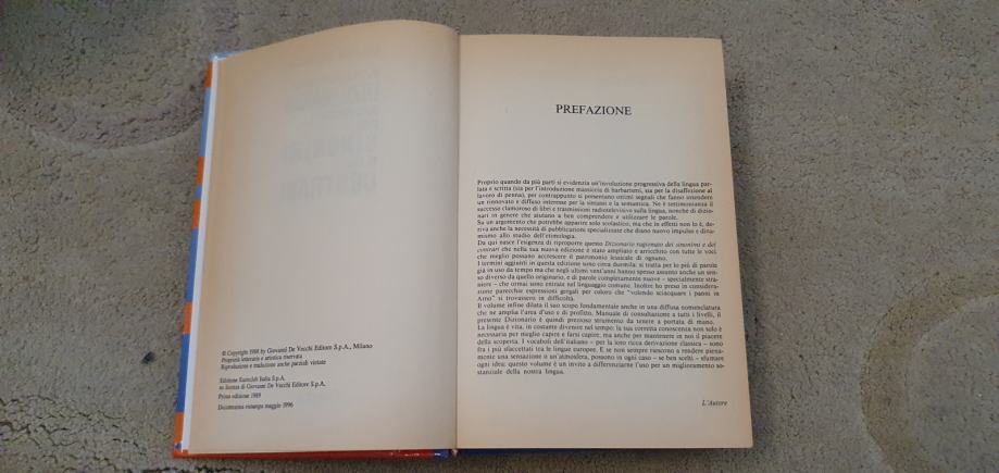 Prodajemo talijanski rječnik od 779 stranica, autora Giannija Cesana, izdan 1996. u Milanu od izdavača Euroclub. Rječnik je u dobrom stanju, no težak je i mora se držati podalje od male djece i kućnih ljubimaca.