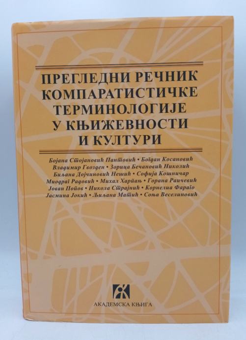 Pregledni rečnik komparatističke terminologije u književnosti i kulturiRječnik je nastao na osnovi zajedničkog interfakultetskog istraživanja teorijsko povijesnih terminoloških pretpostavki komparativne književnosti. Prilikom njegove izrade, što predstavlja pionirski pothvat, izbjegnute su jednostranosti i ograničenja u pristupu ovoj problematici. Njime su postavljene sasvim solidne osnove za proces standardizacije komparatističke terminologije, koji se, dakle, vrši prema jedinstvenim metodološkim i znanstvenim standardima, koji su jasno definirani, ali i dovoljno široko postavljeni. Rječnik je primjer fleksibilnog osuvremenjivanja i standardizacije stručne terminologije u jednoj znanstvenoj disciplini, koja ima bogatu tradiciju i nesumnjive perspektive. Termini koji su obuhvaćeni ovim Rječnikom obrađeni su u složenijoj leksikografskoj deskripciji, tako da svaka odrednica sadrži neophodnu mjeru informativnosti i pouzdanosti. Stranica: 482Dimenzije: 18x25Jezik: Novi SadPismo: ĆirilicaStanje: Nova knjigaUvez: Tvrdi s ovitkomGodina: 2011