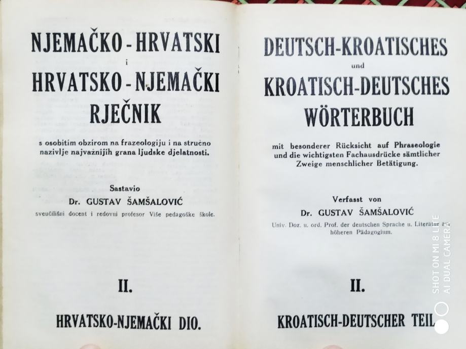 Rječnik njemačko hrvatsko srpski i hrvatsko srpsko njemački. 1929.god.