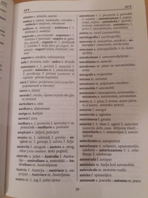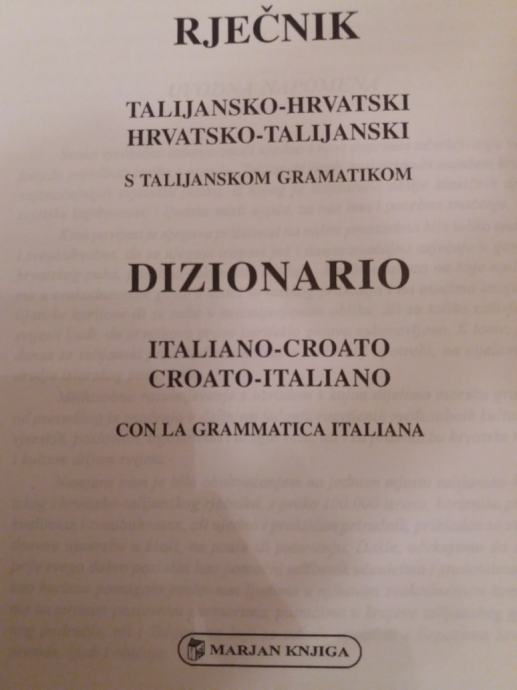 Talijansko-hrvatski i hrvatsko-talijanski rječnik s talijanskom gramatikom.