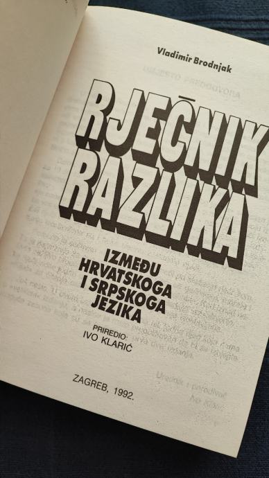 Vladimir Brodnjak Rječnik razlika između hrvatskog i srpskoga jezika,