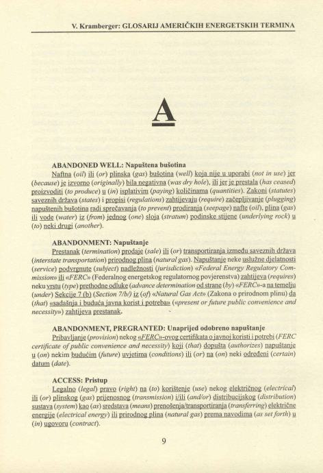 Vladimir Kramberger - Glosarij američkih energetskih termina eng hrv