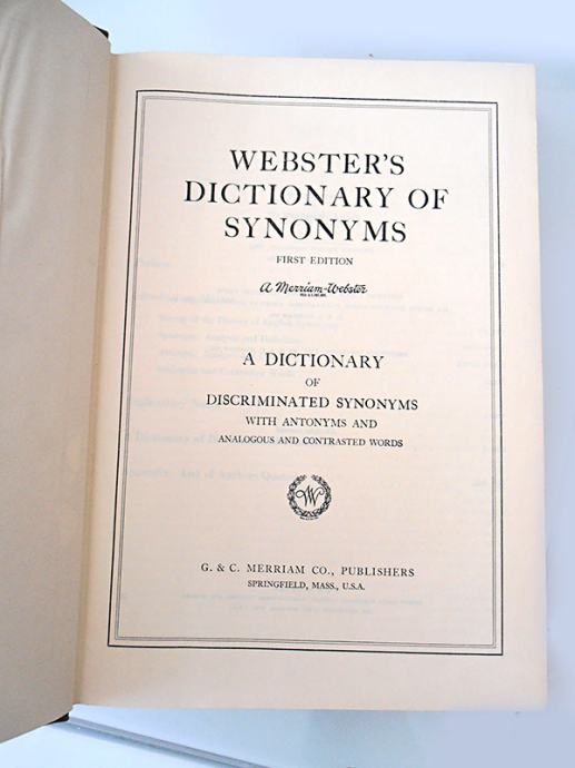 WEBSTER -ov riječnik sinonima, prvo izdanje, 900 stranica, super stanje, još ima očuvan vanjski omot.