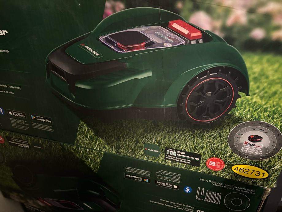 Parkside robotska kosilica za 1000m2, kupljena prošle godine u 7. mjesecu, ali nažalost ne odgovara za naše dvorište.