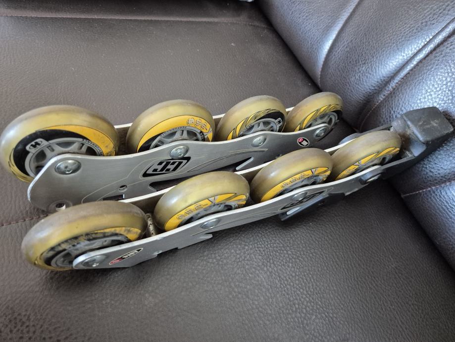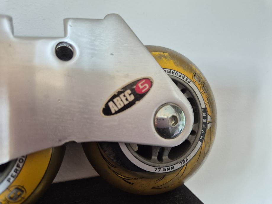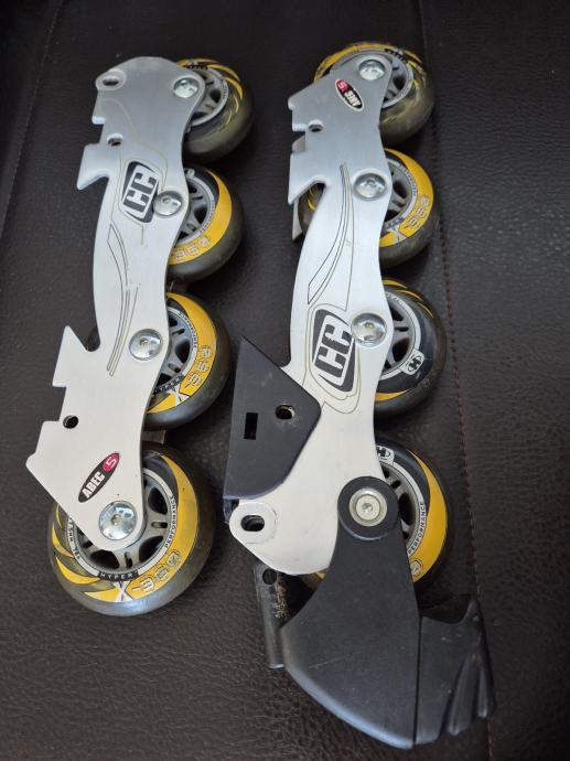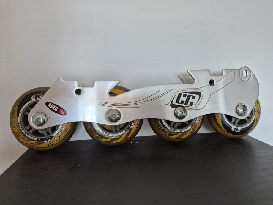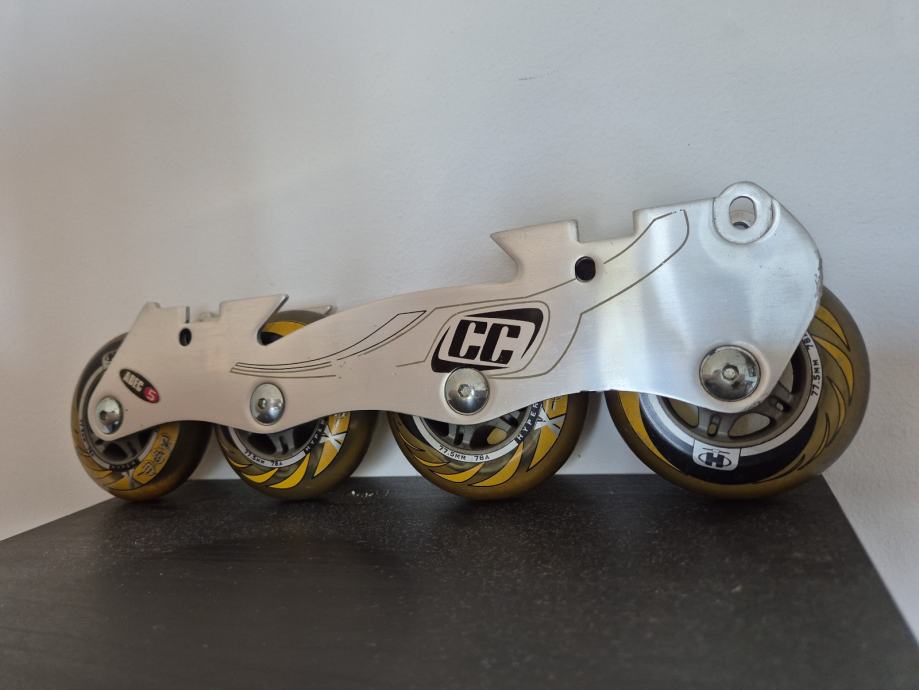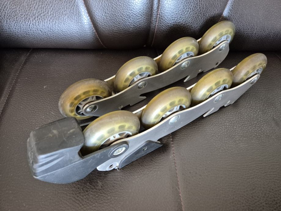 Crazycreek kotaci za role, zajedno sa šinom. Velicina kotaca 77.5mm, silikonski kotaci. Kotacima pripada sina, serafi, i kocnica.