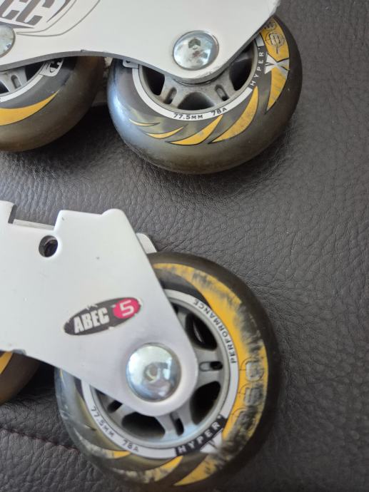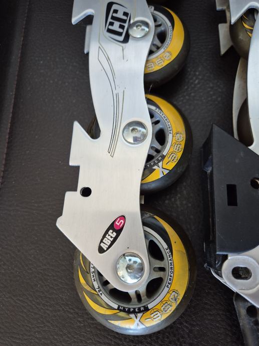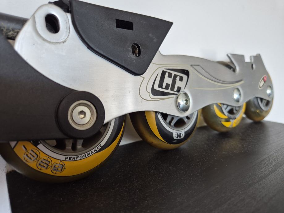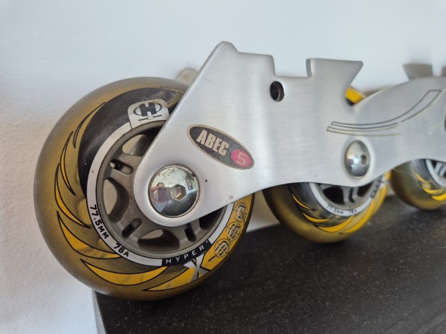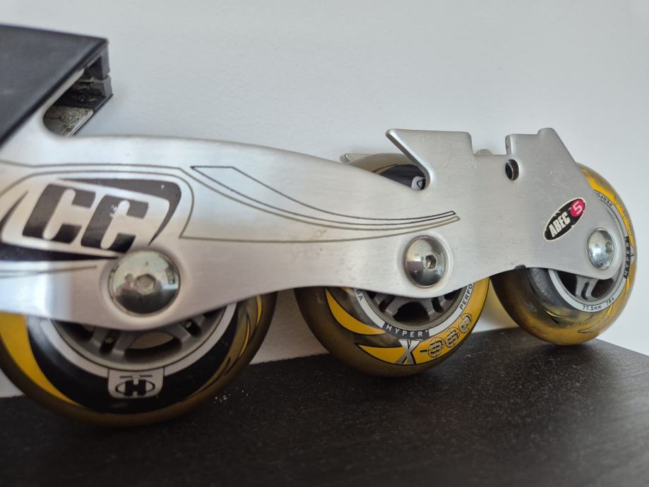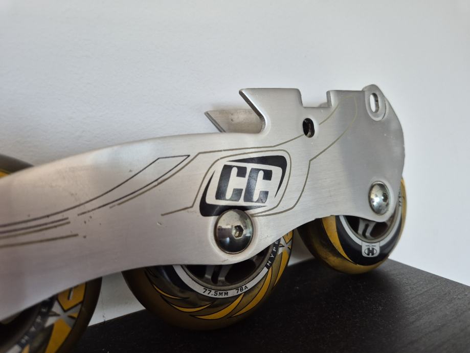 Crazycreek kotaci za role, zajedno sa šinom. Velicina kotaca 77.5mm, silikonski kotaci. Kotacima pripada sina, serafi, i kocnica.