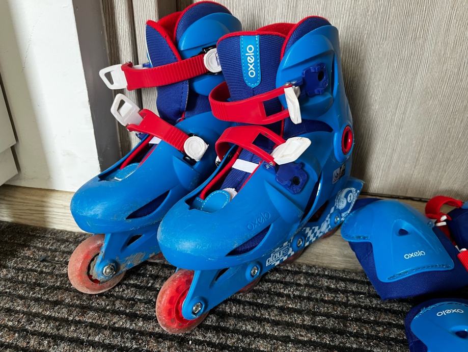 Prodajem dječje role velicina 34-36, korištene nekoliko puta, pa ih je dijete u međuvremenu preraslo. Uz role idu i štitnici za šake, laktove i koljena.