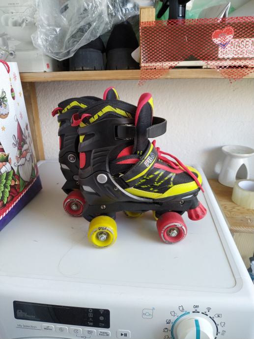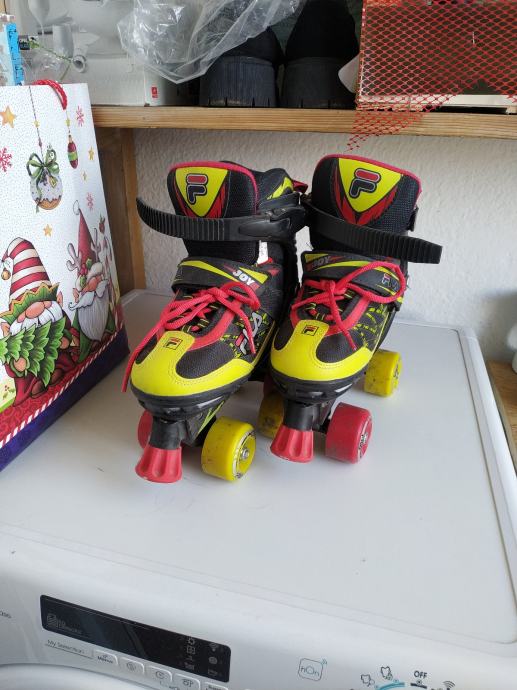Prodajem dječje koturaljke, Fila. Veličina je podesiva i pokriva raspon od 35 do 38. Cipela ima vezice i dodatnu kopču s remenom za sigurno pričvršćivanje oko gležnja.