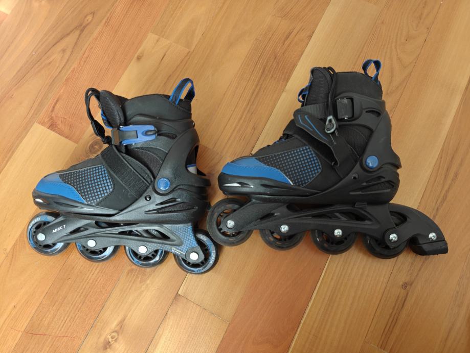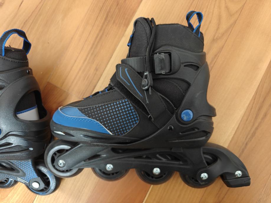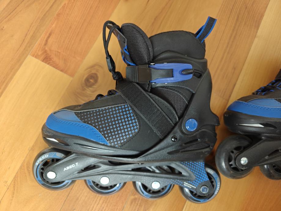 Prodajem inline role u crno-plavoj kombinaciji, veličine 33-37. Ležajevi su ABEC 7, što osigurava dobro klizanje i glatku vožnju. Role su opremljene kopčom i vezicama za sigurno prianjanje uz nogu, a gornji dio je od mrežastog materijala koji dobro drži stopalo. Kotači su u kompletu na svim četiri mjesta na svakoj roli.