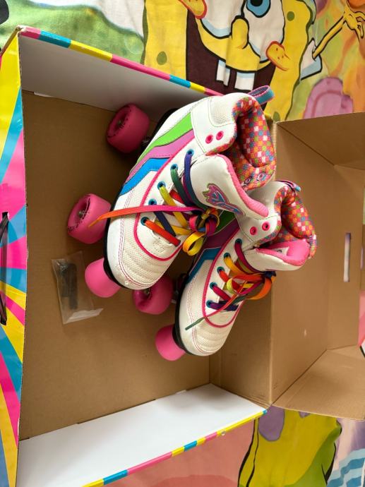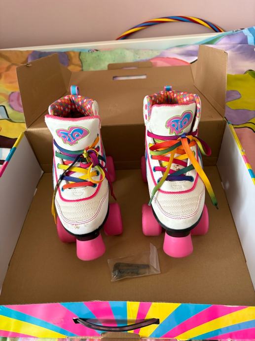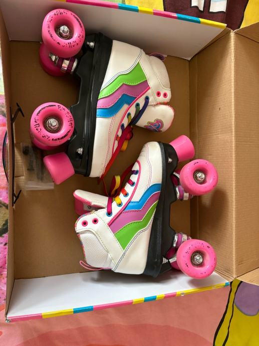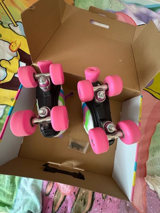 Prodajem role broj 33 u odličnom stanju s atraktivnim šarenim dizajnom i upečatljivim rozim kotačima. Idealne su za rekreativno rolanje i zabavu, dolaze u originalnoj kutiji.