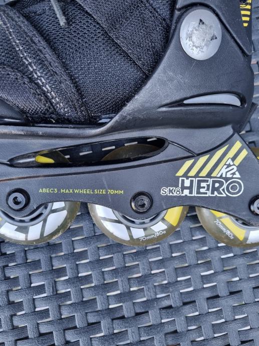 Dječje role od broja 29 - 34 korištene ali u dobrom stanju.Kotačiči veličine 70 mm.Ime firme HERO K-2 sk8