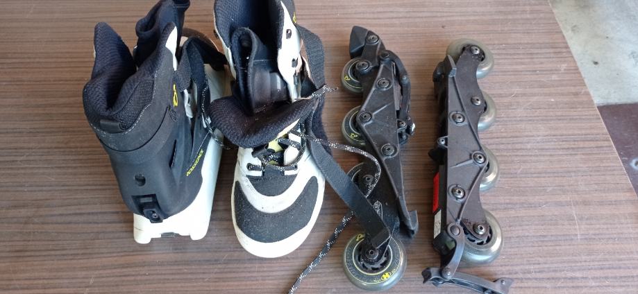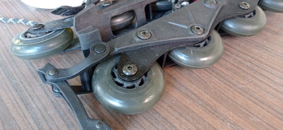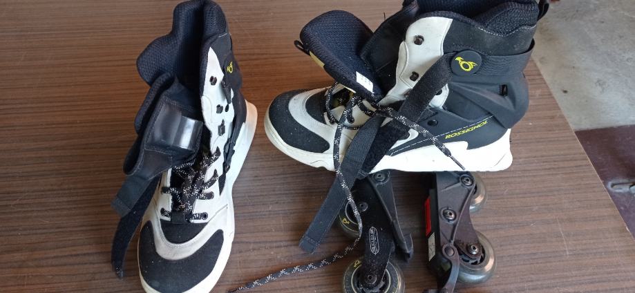 Role Rossignol sa brzoskidajućim dijelom na kojem su kotačići. Na rolanju možete stati, skinuti dio za rolanje i u cipelama od rola ući u trgovinu, kafić i sl. Role su u odličnom stanju, nepotrošene, bile su svega 2-3 puta vožene.
