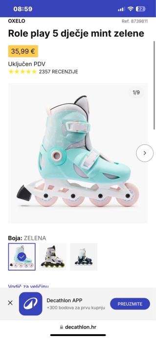 Role Play 5, mint zelene, OXELO, 28-30 podesive, odlicno stanje