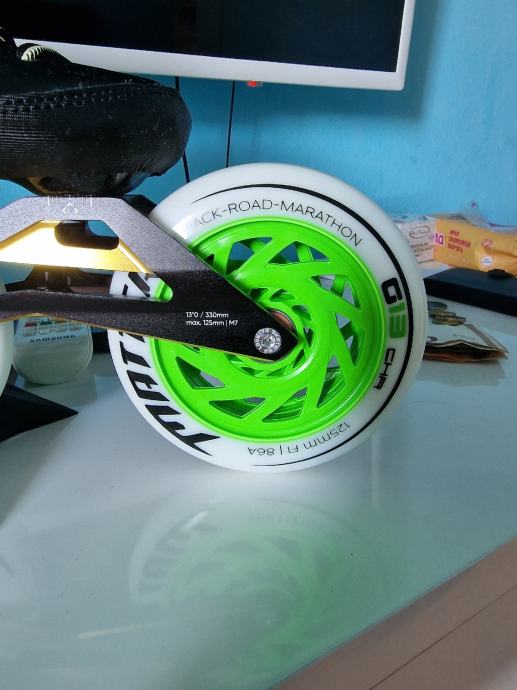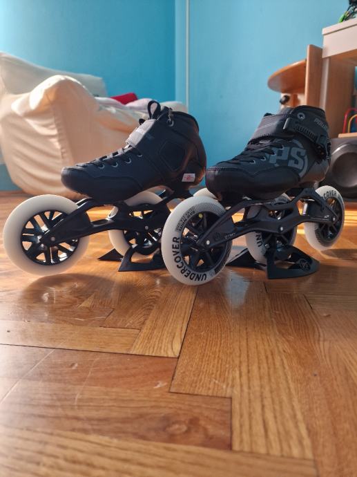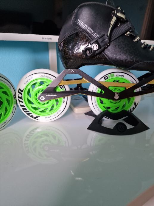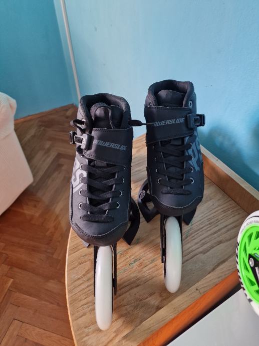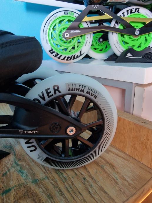 Prodajem nove role powerslide final 125 mm kotači... Uz role dajem kočnicu i dodatni pad koji se troši tokom kočenja.. Kotači su UNDERCOVER 125mm 85a tvrdoća, drugi ležajevi whicked Japan 9... Rama elite trinity 12.5 race. BROJ 40 ili dužina stopala 25.5 cm..... Ako netko želi mogu staviti Full racing kotače by MATTER G13 CHR 86 ILI 84 A.. ALI JE CIJENA ZA 200 EURA VEĆA....