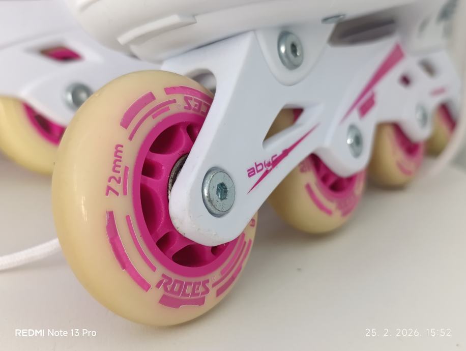 Prodajem skoro nove role Roces COMPY 8.0 GIRL WHITE/VIOLET, 38-41 Radi se o modelu s podesivom veličinom koja pokriva raspon EU 38-41 (UK 4-7 / US 5-8). Silikonski kotači su promjera 72 mm.