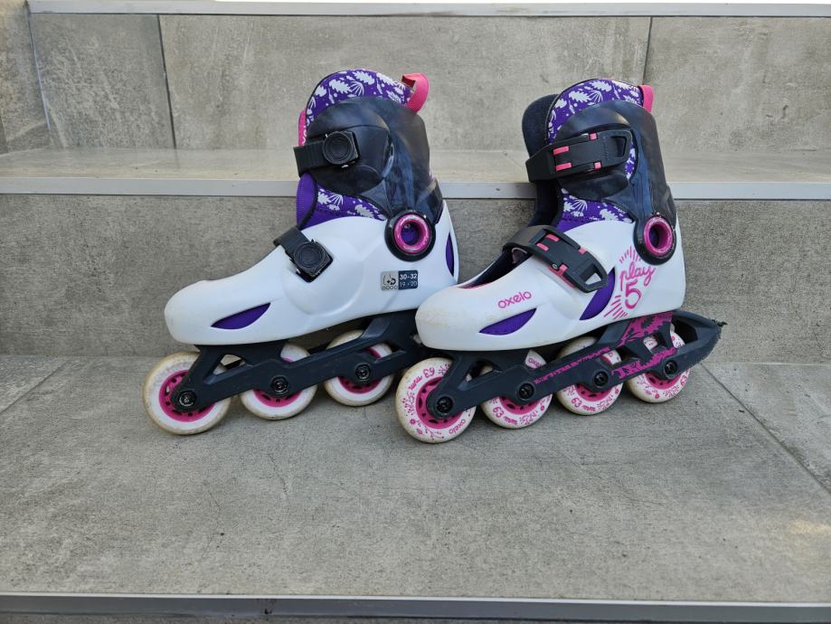 Role i štitnici kupljeni u Decathlonu. Sve funkcionira i nista nije potrgano. Vidljivi su tragovi koristenja.