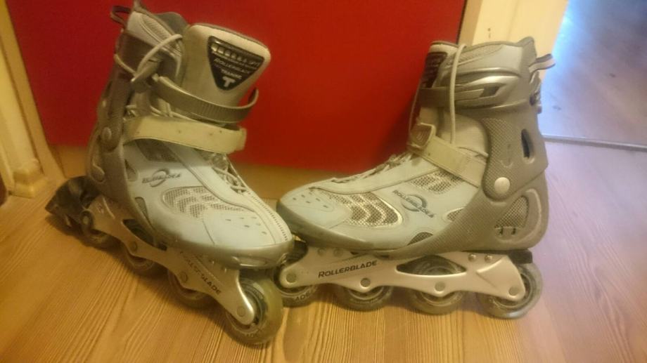 prodajem role Rollerblade "progressive fit system" broj 41, vožene ali izuzetno uščuvane, prosle godine su stavljeni novi ABEC 9 lageri i nakon toga su vozene cca 10 krugova oko jaruna. kotaci su u odlicnom stanju, original rollerblade velicine 78mm, tvrdoće 80A