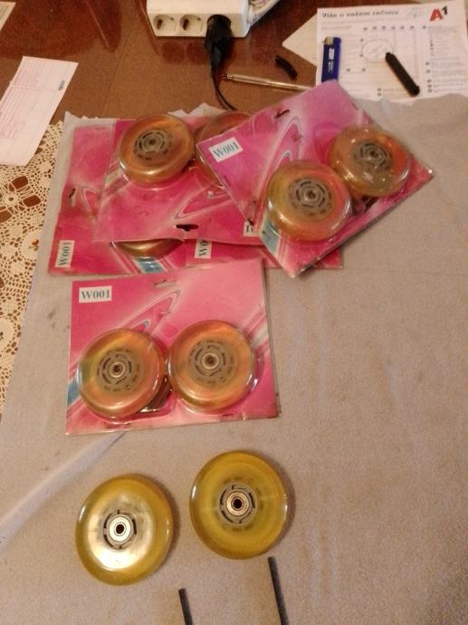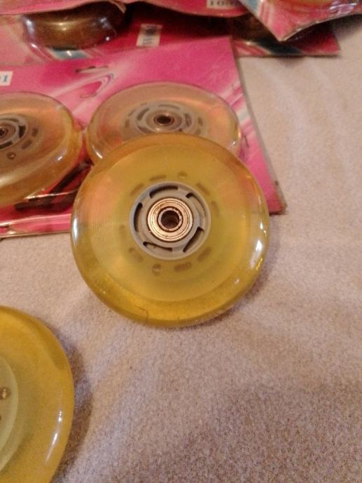 Svijetleći točkovi fi100mm i širine 25 mm i nutarnjeg otvora na ležaju 8mm.Vrlo kvalitetni ,nekorišteni s ABEC-5 ležajem ZZ809.Cijena je za par i pripadajućim imbusima 5mm.Šaljem poštom uplatom na moj tekući račun+ troškovi poštarine.