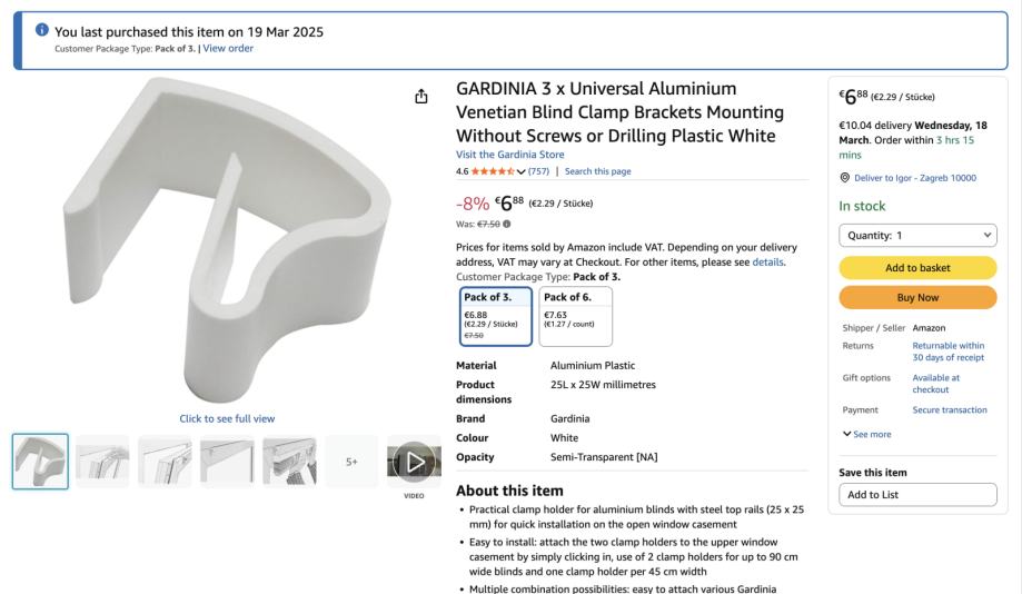 Uz žaluzinu dolazi i dodatna oprema (vrijednosti oko 10 EUR) bez dodatne naplate.