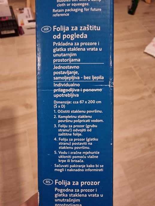 Prodajem Window Privacy Film od Melinera. Kupljeno ali nikad otvoreno. Dimenzija 67x200cm. Prikladno za prozore i staklena vrata.