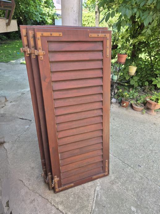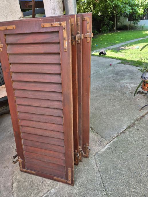 Šalokatori/grilje/žaluzine drvene, dvokrilne, 3 komada (3 para), u vrlo dobrom stanju. Ispravan mehanizam za otklapanje/zaklapanje lamela (segmenata) i zabravljivanje.