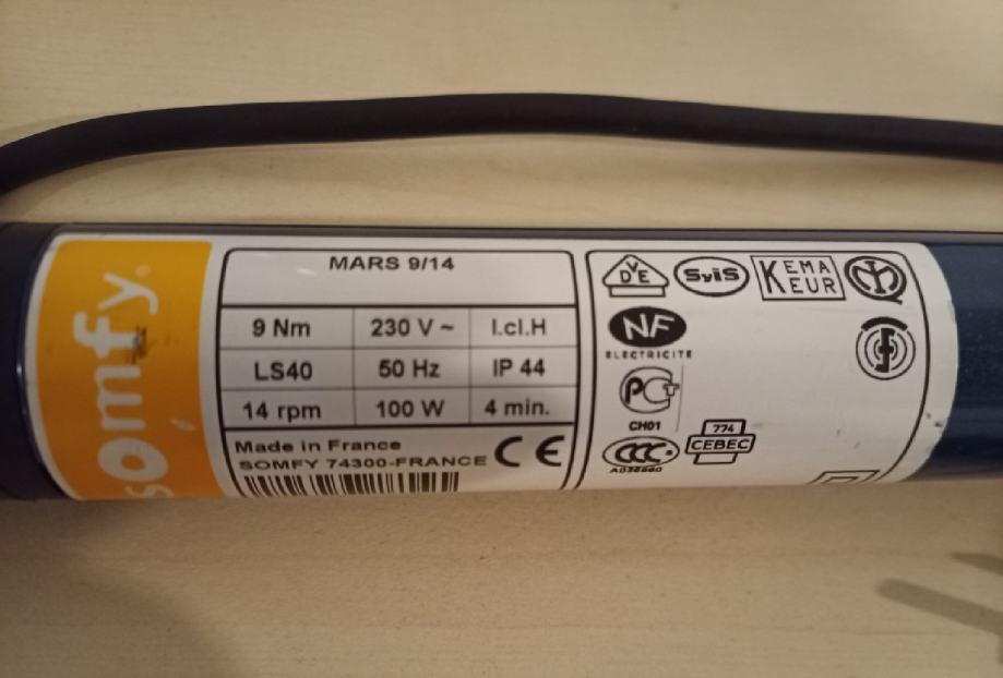 Somfy MARS 9/14 LS40 tubularni motor za rolete, zavjese, platna i sl.