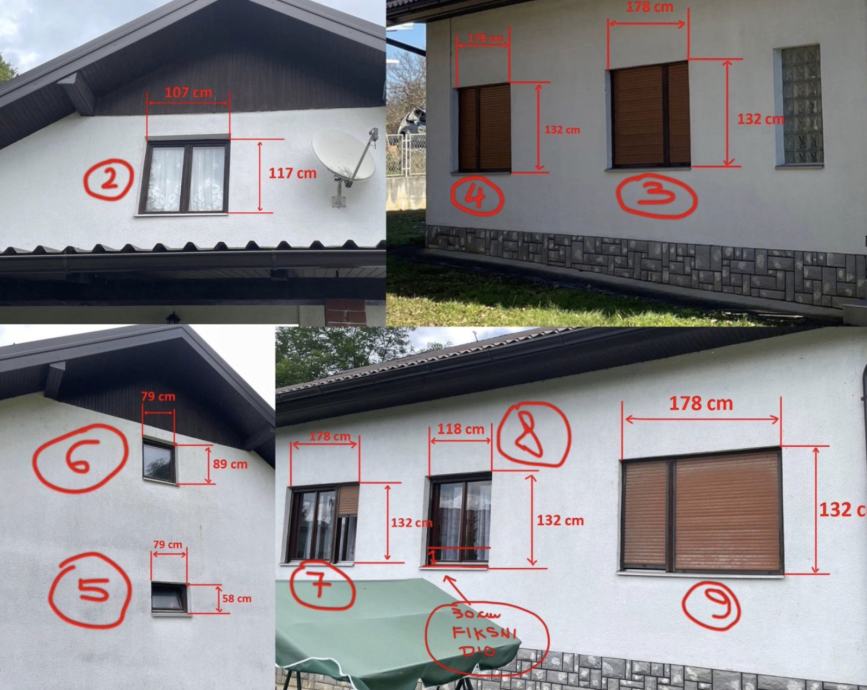 Dimenzije prozora su : 4 komada 180x135cm i jedan prozor je 120x135cm