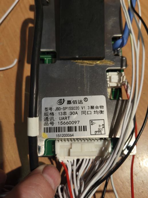 BMS podržava do 15s bateriju, ali je trenutno složen za 13s (48v nominalno).