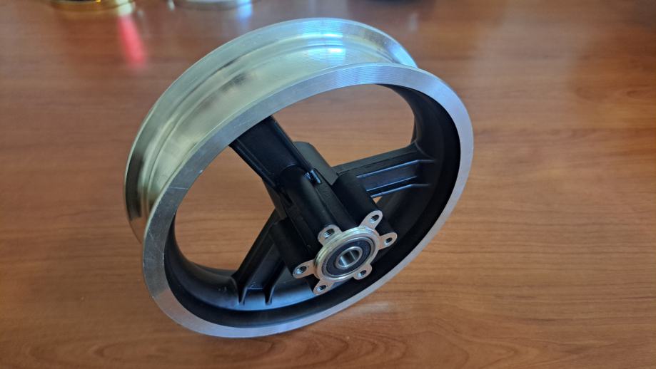 Prodajem novu, nikad korištenu felgu za električni romobil. Dimenzije: 10x2,75-6,5. Promjer 16,5 cm Širina 4 cm.