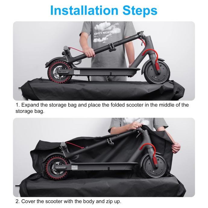 Izrađena od platna visoke gustoće + PP materijala, koji je vodootporan i otporan na kidanje. Unutarnja podstava štiti romobil od vode i prašine, idealna za zaštitu električnog romobila od oštećenja, posebno dizajnirana za transport.
