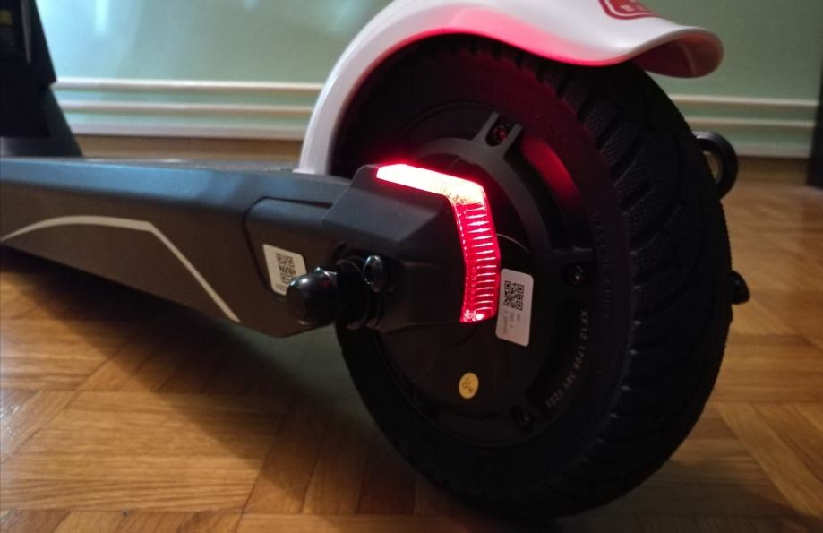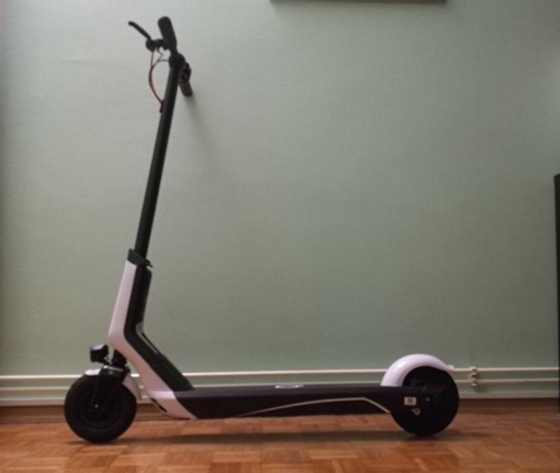IPX5 certifikat jamči vodootpornost romobila u slučaju da vas po putu ulovi kiša ili ukoliko prolijete tekućinu po njemu (vozilo nije otporno na uranjanje u vodu i prolazak kroz lokve dublje od 2cm). Ekran na desnoj ručki prikazuje status baterije, trenutnu brzinu, prosječnu brzinu i ukupnu kilometražu. Dualni sustav kočenja omogučuje kočenje prednjom (elektronička) i stražnjom (mehanička) kočnicom. Na taj način zadržava se ravnoteža, stabilnost i sigurnost uz kratak put kočenja.