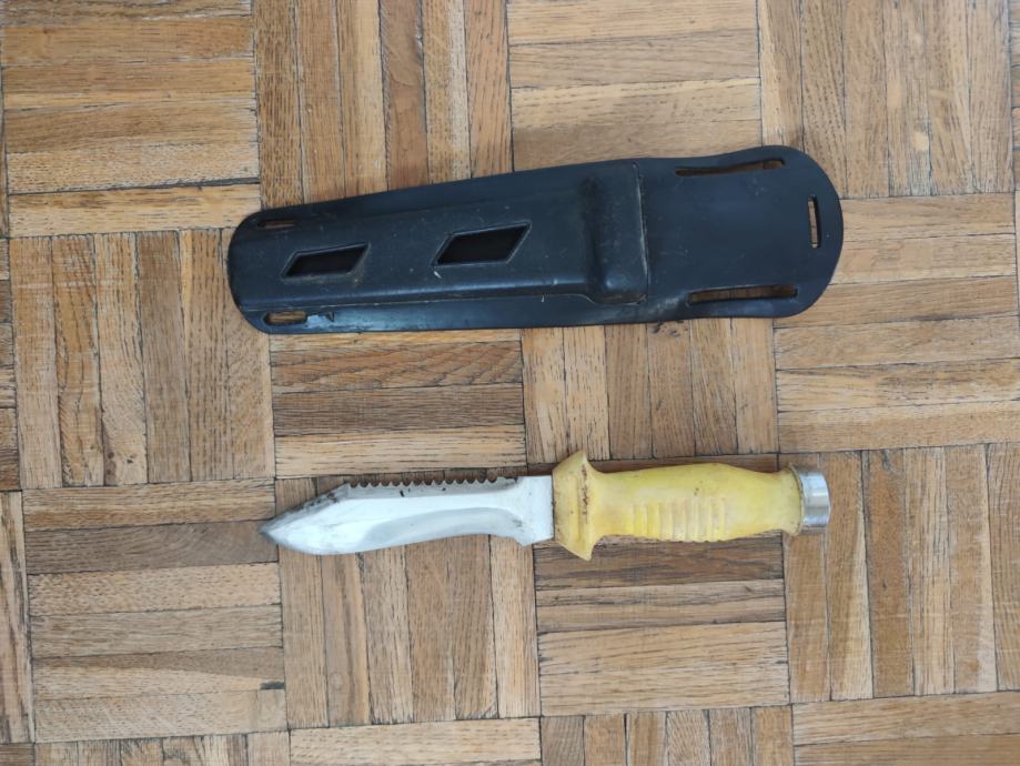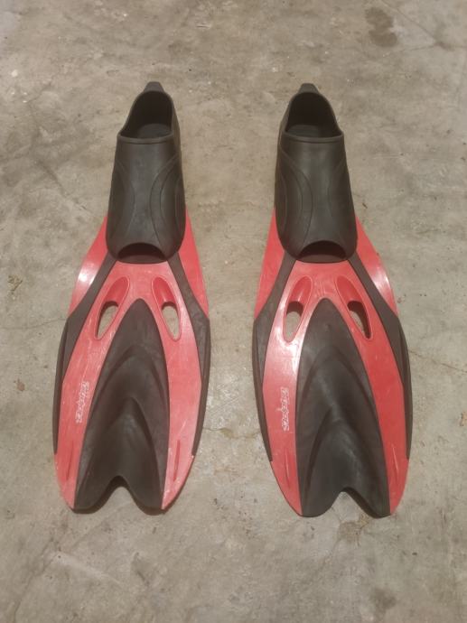 Prodajem rabljenu ronilačku opremu. Odijelo debljine 5 mm, pojas sa olovima, jedna rukavica, čarape, peraje 3 para (veličine XL, 42-44, 44-46), 3 maske, 3 disalice, podvodna baterijska svjetiljka, nož sa koricom, torba.