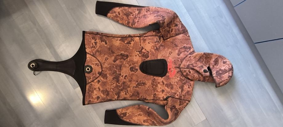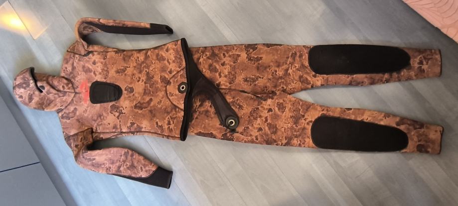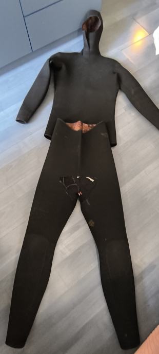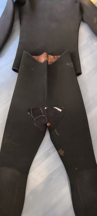 Ronilačko odijelo polo sub 7 mm izvana fudra iznutra glatko, dosta mekano i rastezljivo. Odijelo je rađeno po mjeri nema broja već bi bilo idealno za visinu do 182cm i težinu do 92kg Vide se tragovi oštećenja koja su popravljeni ali općenito odijelo je u solidnom stanju. I dalje bih ga koristio ali postalo mi je malo.
