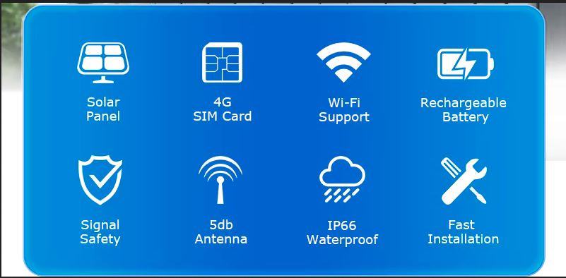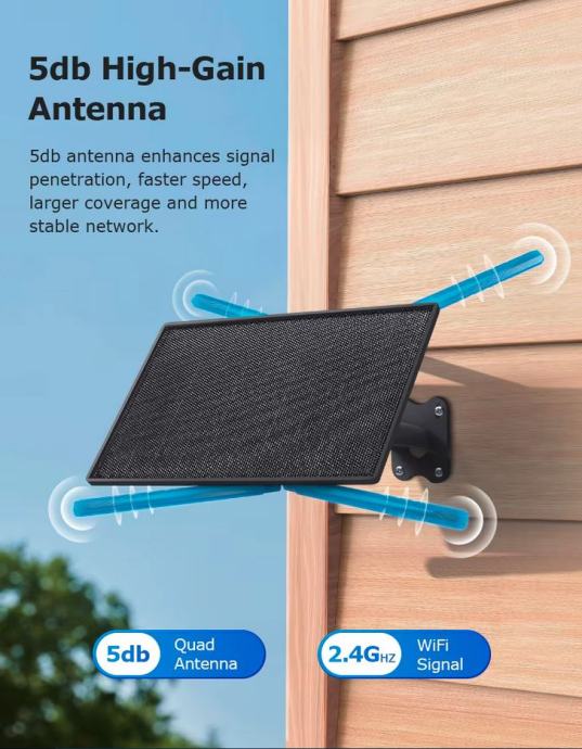 • Visokoučinkovita antena: Ima antenu visokog pojačanja od 5 dB s četiri antene, uključujući dvije za WiFi i dvije za 4G, maksimizirajući snagu signala i pokrivenost u radijusu od 30-50 metara.
