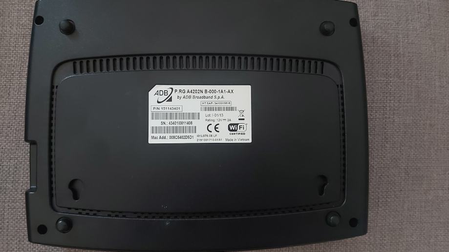 ADB A4202N ADSL Modem/Router, ne znam dali dobro radi. S njim se dobije UTP kabel i telefonski kabel. Dolazi sa adapterom za struju u originalnoj kutiji. Nema mogućnost za SIM karticu.
