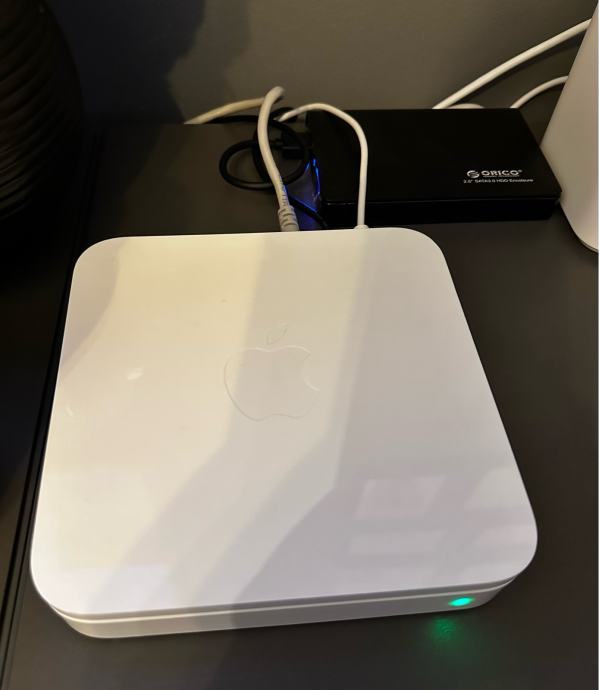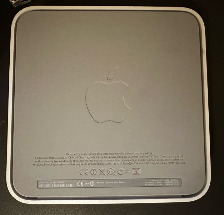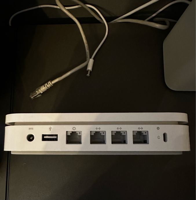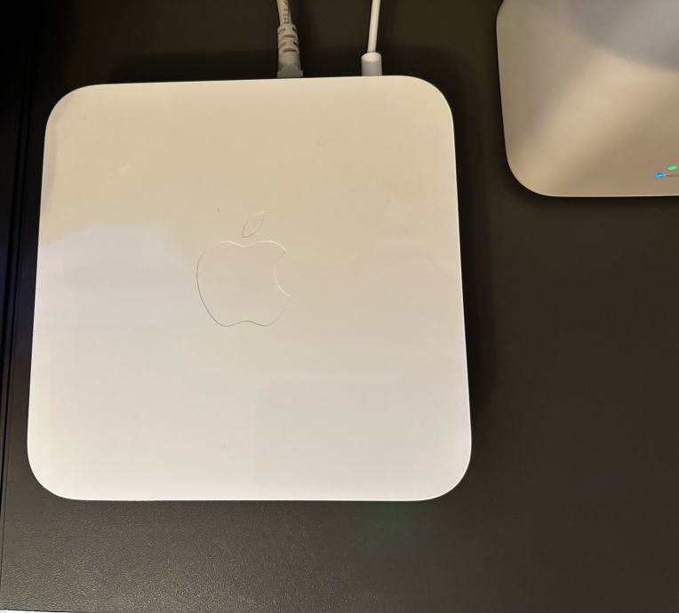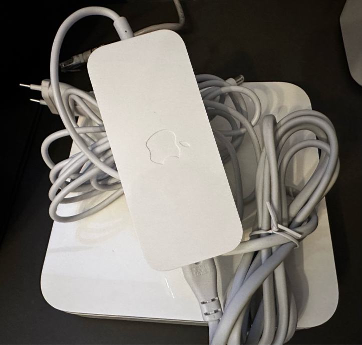 Prodajem router Apple Airport Extreme s punjačem i lan kabelom. Appleov router možete spojiti lan kabelom na postojeći router i povezujući ga eksternim diskom koji se može koristiti kao mrežna pohrana podataka koju možete povezati sa iPhone i mac računalima, kao i pc i Android uređaji. Može se i printer povezati preko usb-a. Istovremeno odašilje frekvenciju 2,4GHz i 5 GHz.