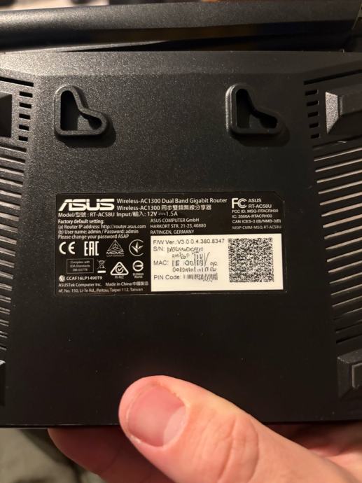 Prodajem rabljeni i potpuni ispravan Asus RT-AC58U wireless ruter. Radi se o dual band gigabit ruteru koji podržava AC1300 standard. Na stražnjoj strani nalaze se četiri LAN priključka i jedan WAN priključak, a ruter ima dvije vanjske antene.