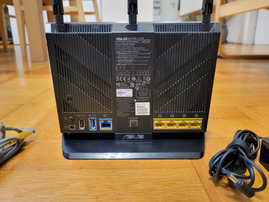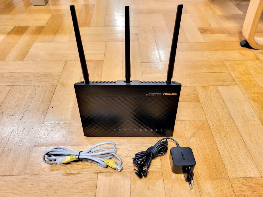 ASUS RT-AC68U E1 AC1900 Router s napajanjem i ethernet kablom. Potpuno ispravan, bez tragova korištenja, stabilno radi, instaliran Merlin firmware.