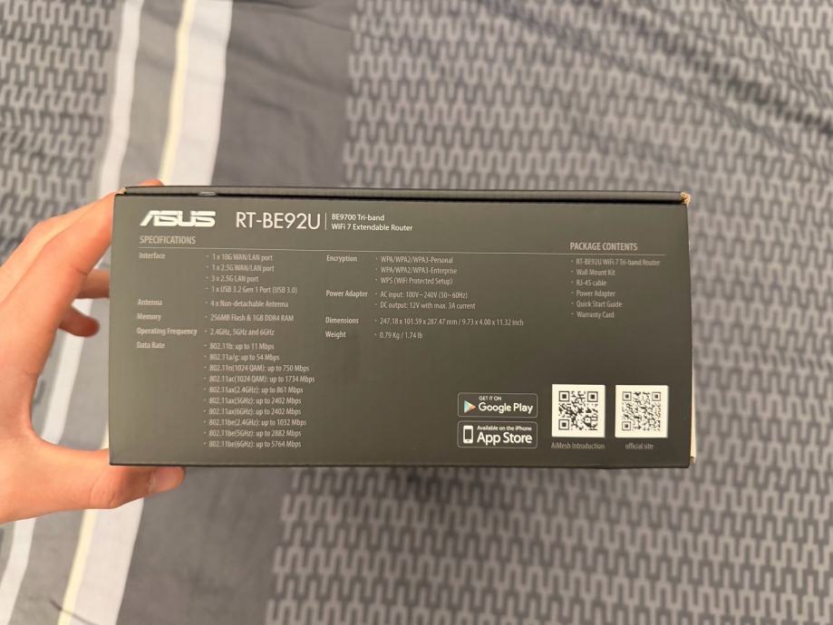 Prodajem ASUS RT-BE92U ruter za igranje, WiFi 7 (90IG0950-MO9A0V) kupljen s Mall.hr