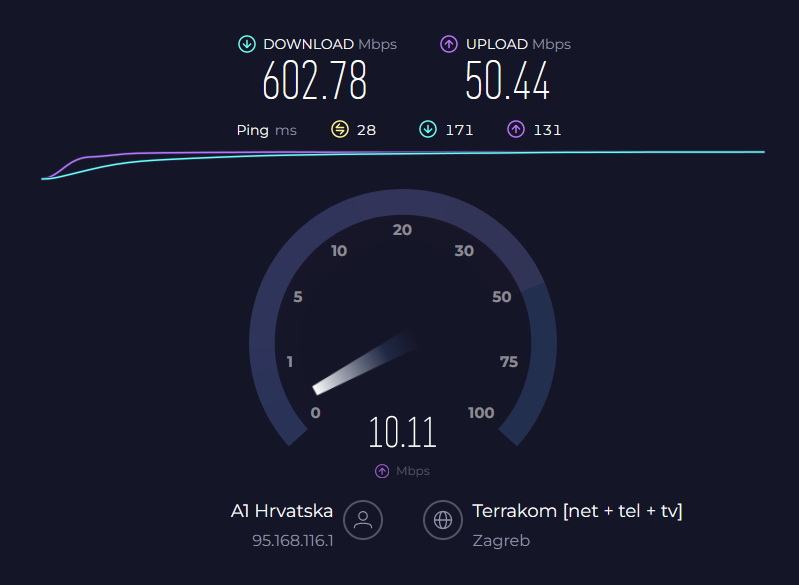 Koristen na A1 i Telemach mrezi, podržava 4G,4G+ i 5G mreže svih operatera, na A1 putem 5G mreže izmjereno 602/50 Mbit/sek.