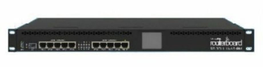 1U rackmount, 10xGigabit Ethernet, SFP, USB 3.0, LCD, PoE out on port 10, 2x1.4GHz CPU, 1GB RAM, RouterOS L5