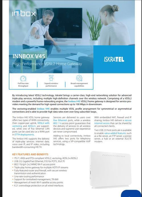 Innbox V45 Wifi router i ADSL modem odnosno "Home gateway".