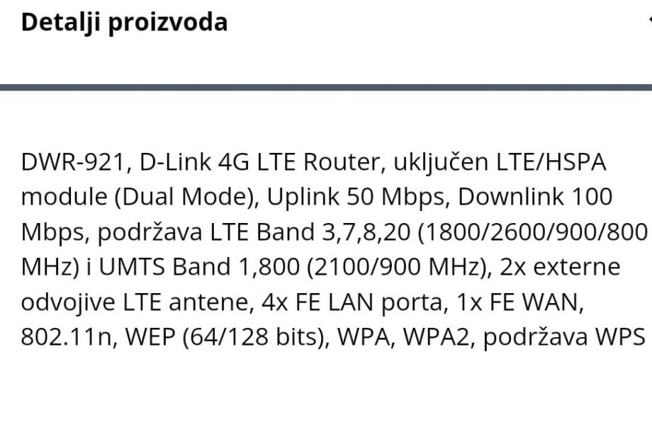 > Podržava: LTE Band 3, 7, 8, 20 (1800/2600/900/800 MHz ) i UMTS Band 1,800 ( 2100/900 MHz ).