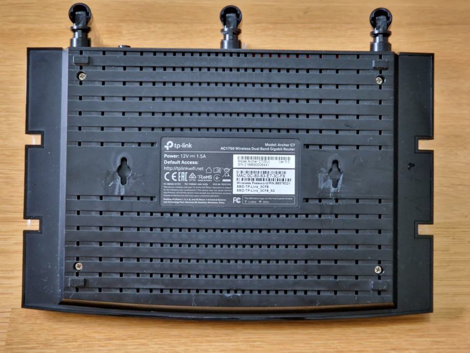 Prodajem korišteni router TP-Link Archer C7 AC1750. Kupljen je krajem 2018. i, osim manjih kozmetičkih tragova korištenja, potpuno je ispravan.