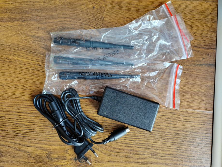 Huawei ruter je u tvorničkom pakiranju sa svim dodacima. Kutija otvorena zbog slikanja, ruter probno uključen.